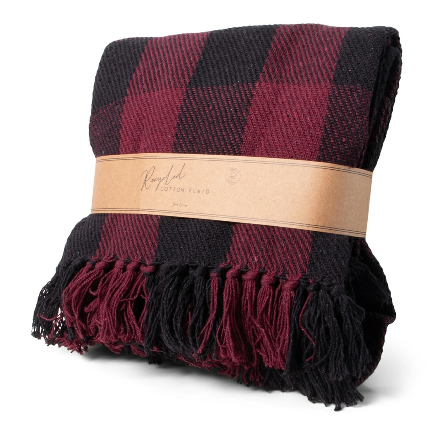 Recycled Cotton Plaid Geruit Bordeaux 130×180 cm