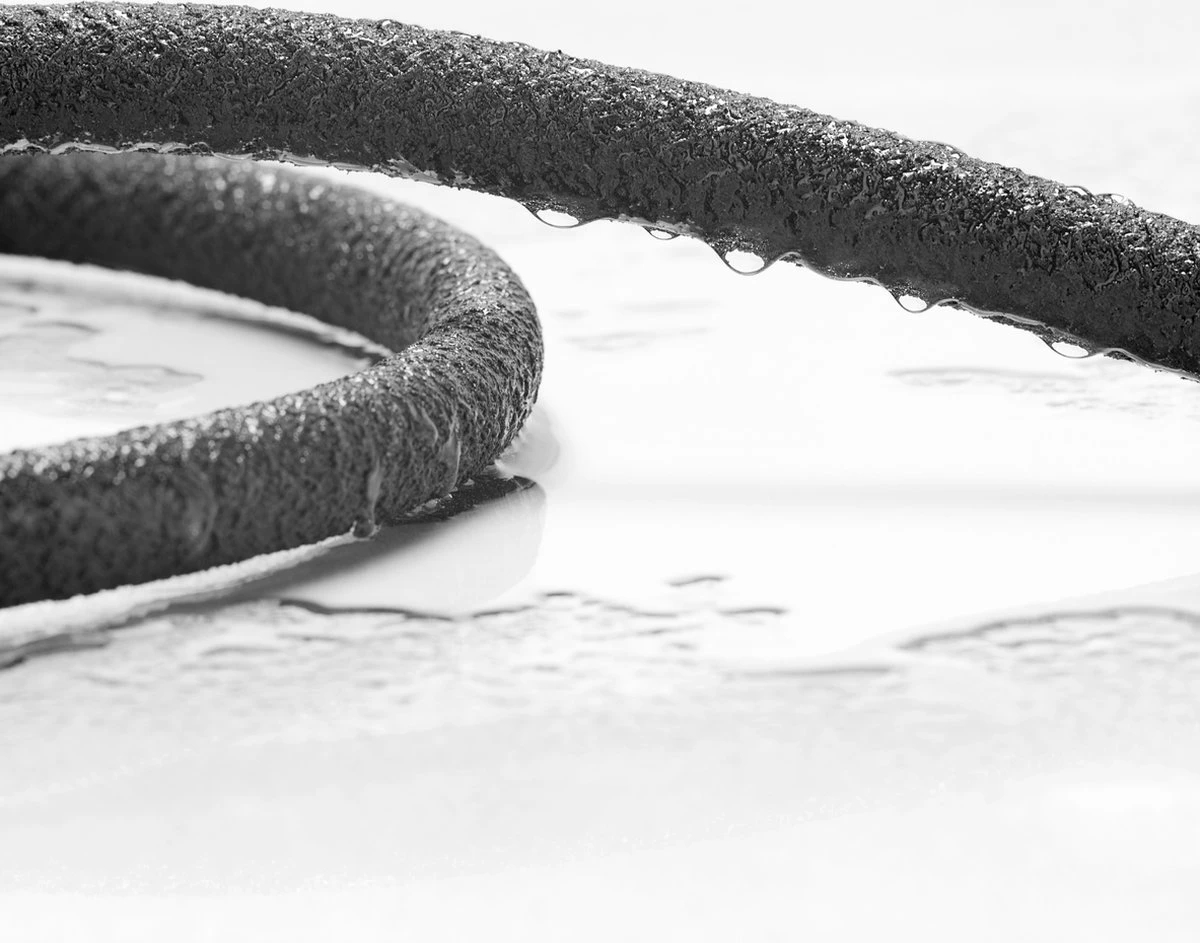 De slang is van poreus rubber waardoor het water vloeit. Zowel boven- als ondergronds te gebruiken.
