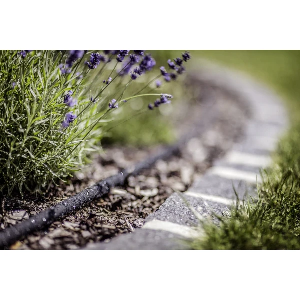 Speciaal voor beregening/bevloeiing. Compleet met slangkoppeling en einddop. Direct verlengbaar op einddop. Volledig U.V.-bestendig en kleurecht.
