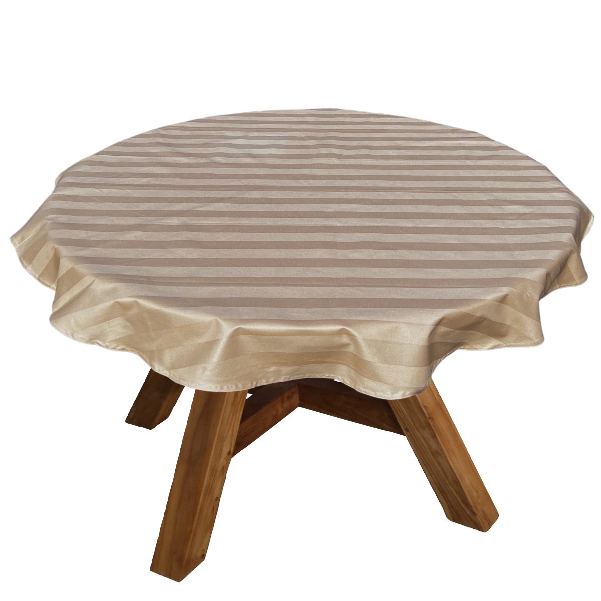 Rond tafelkleed voor buiten damastkatoen met acryl coating – Koffie – streepØ 150 CM