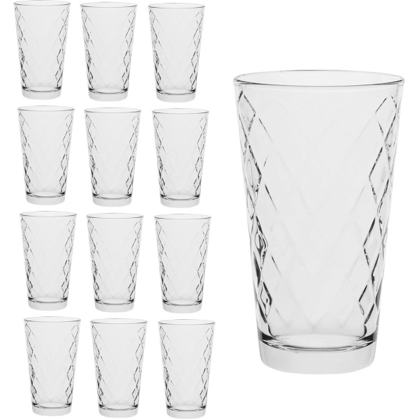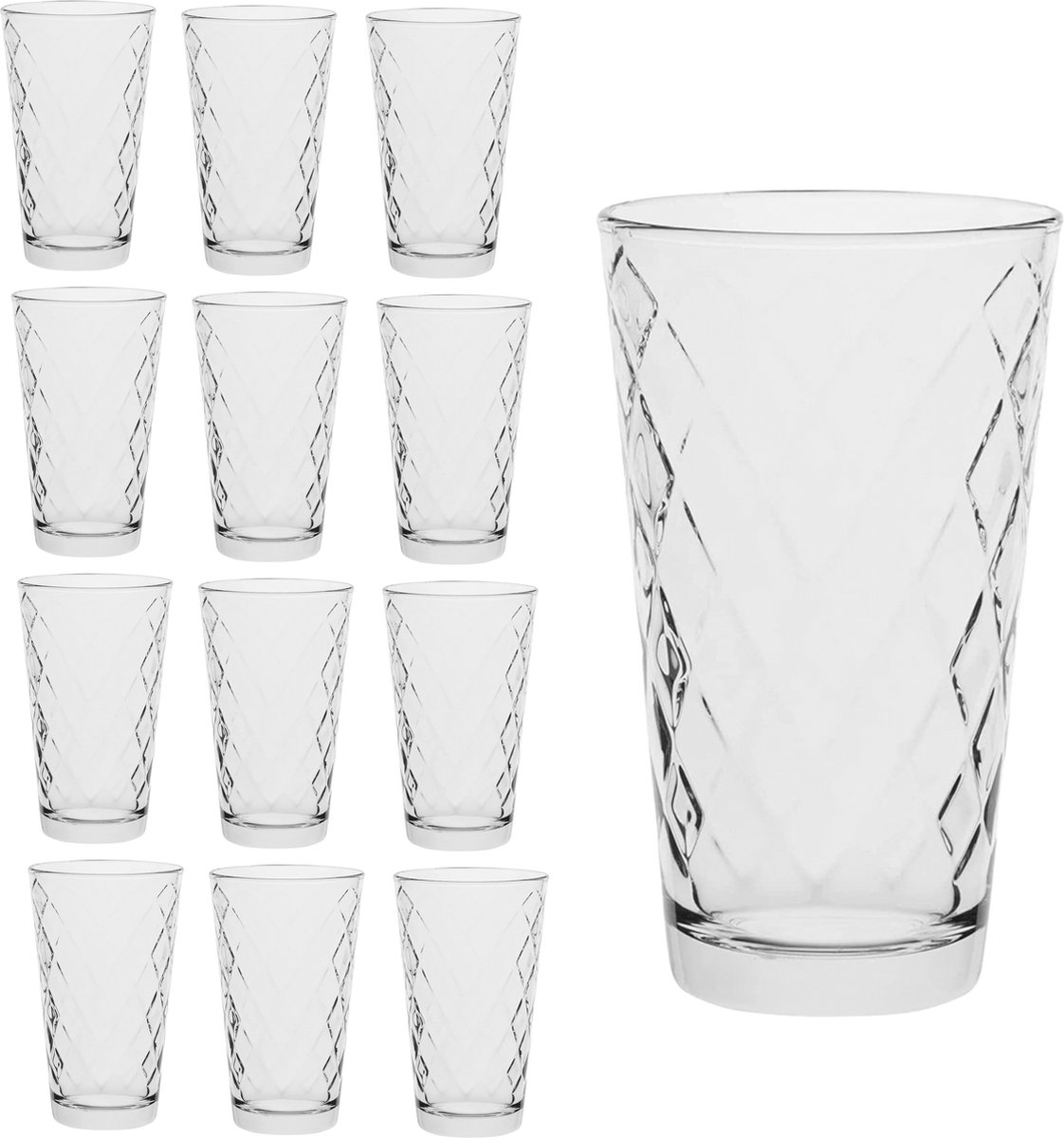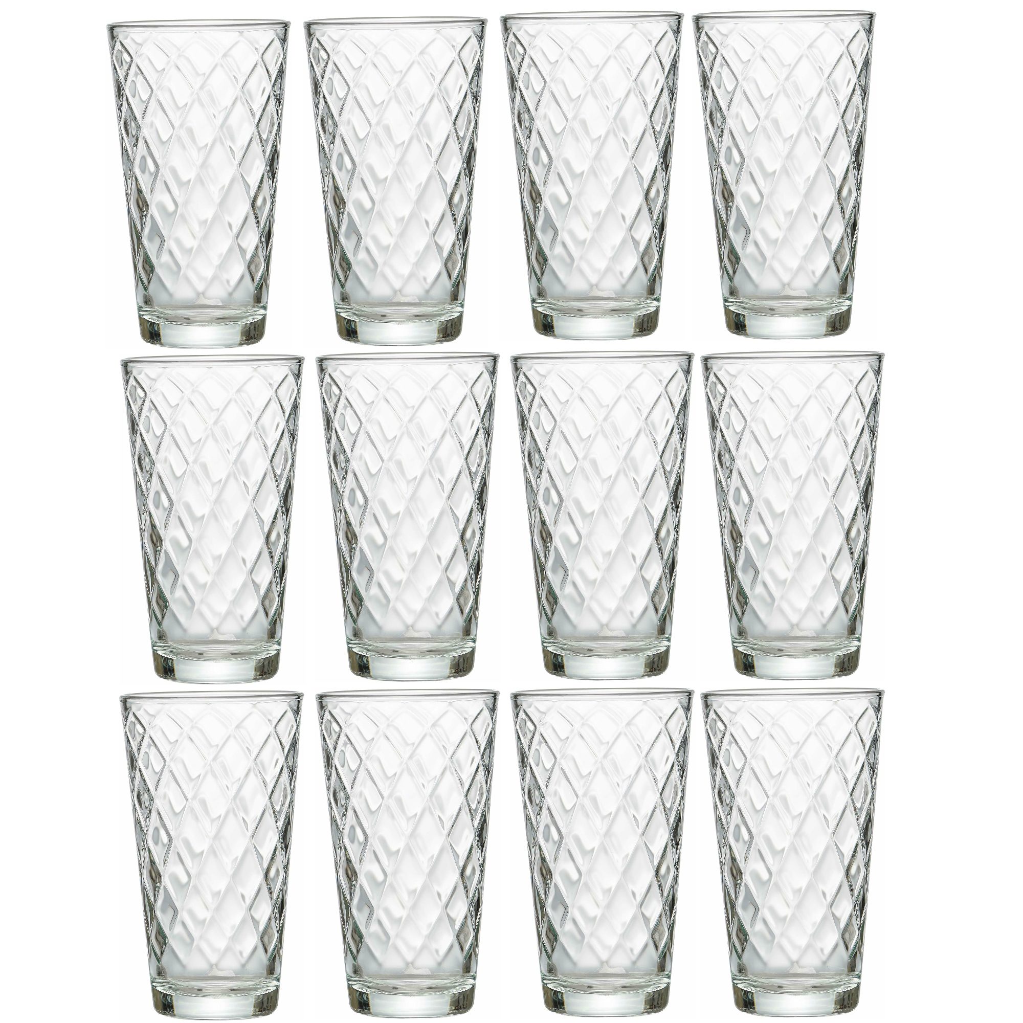 Veilig online shoppen doe je bij ons!Breng stijl en elegantie op tafel met deze set van 12 longdrinkglazen van 370 ml. De glazen zijn vervaardigd uit hoogwaardig helder glas met een luxe reliëfpatroon