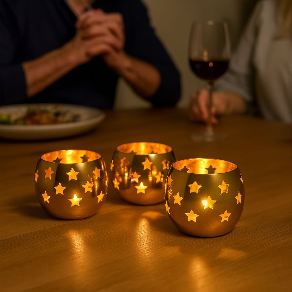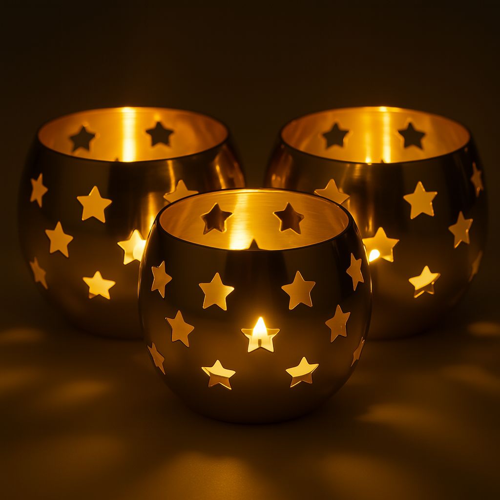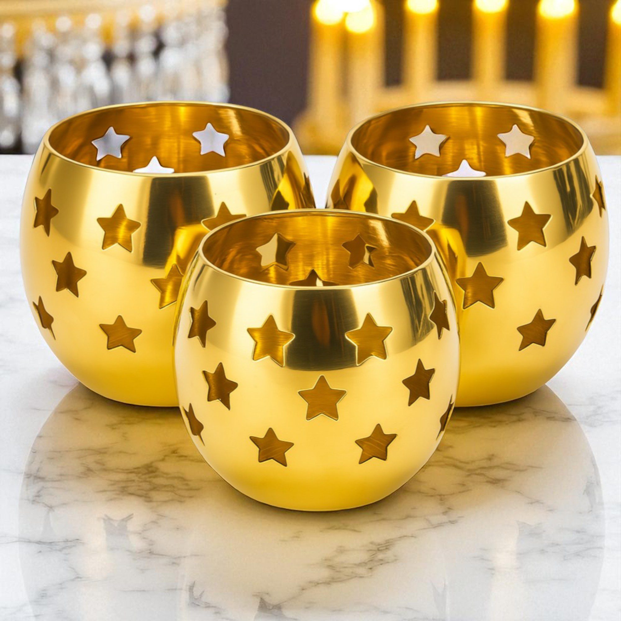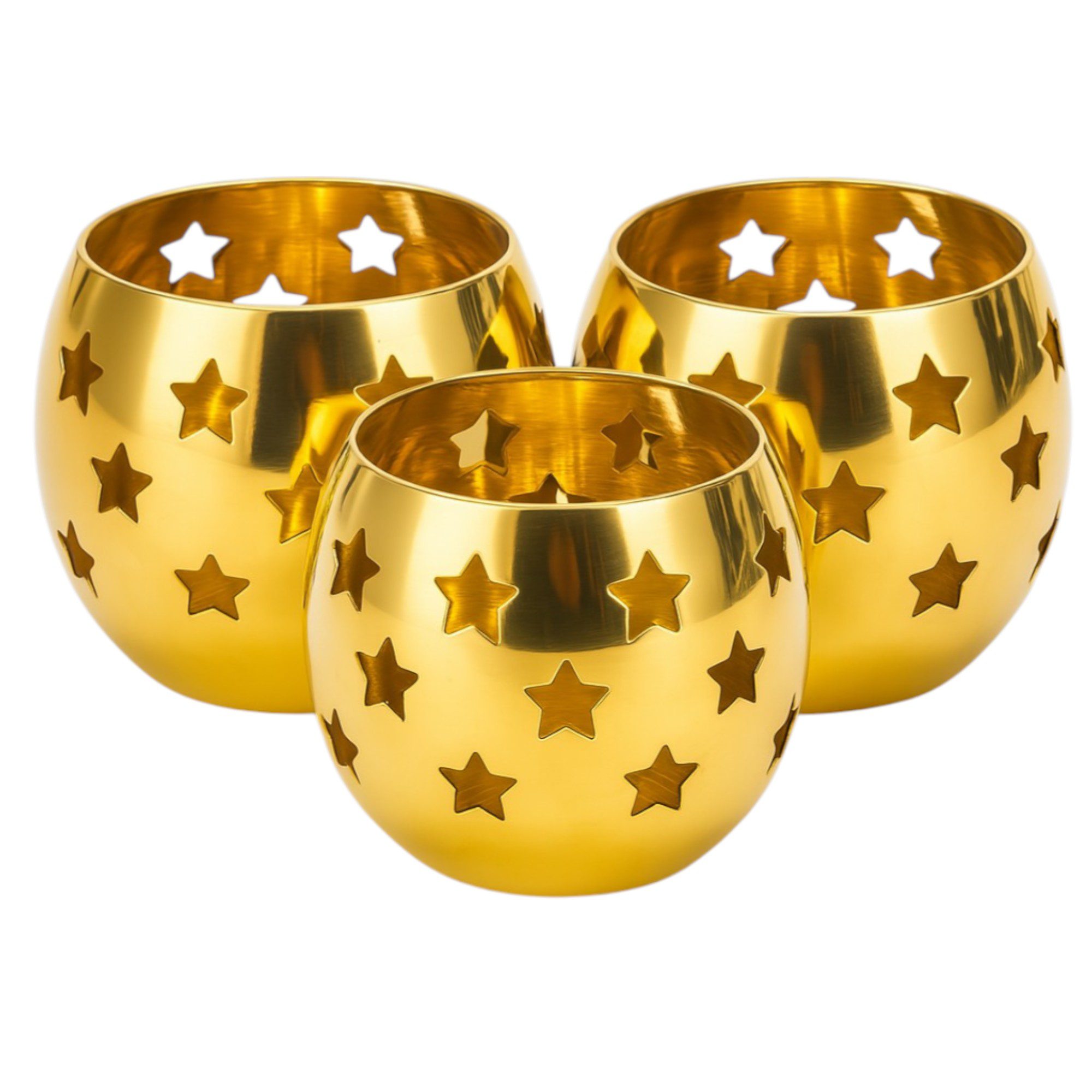 Set van 3 Messing Waxinelichthouders – 80 x 80 x 60 mm – Sterrenmotief