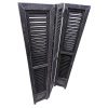 Een prachtige drie-luik shutter met zwarte kleur. De hoogste afmeting in ons assortiment van shutters. De houten shutter bestaat uit 3 panelen, welke met stevige scharnieren aan elkaar zijn verbonden. Deze roomdivider is uitgevoerd in een robuuste zwarte. Door zijn afmeting de perfecte houten shutter voor je raam of woonkamer en door het design mooi decoratief.
