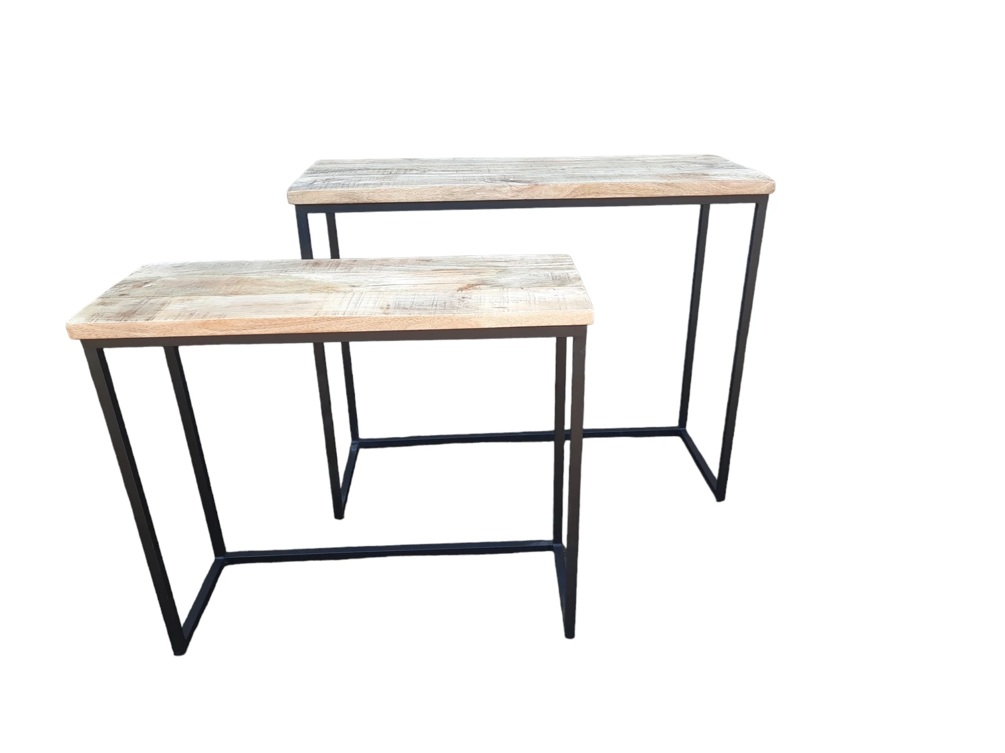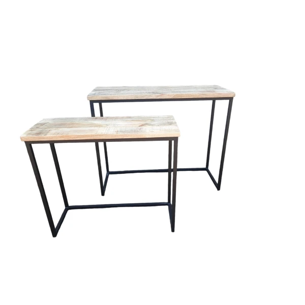 Sidetable set van 2 – Mangohout – Zwart Metaal – 100 x 38,5 x 81 cm / 79,5 30 x 71 cm