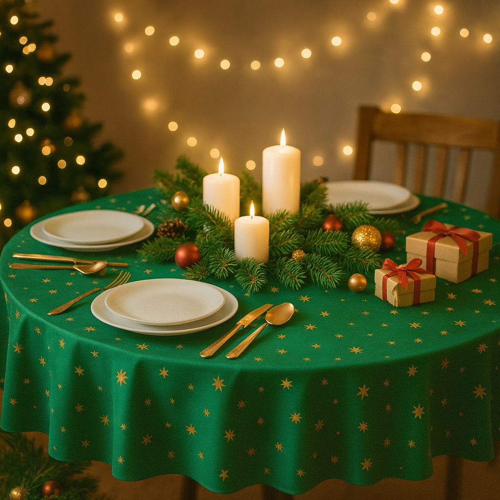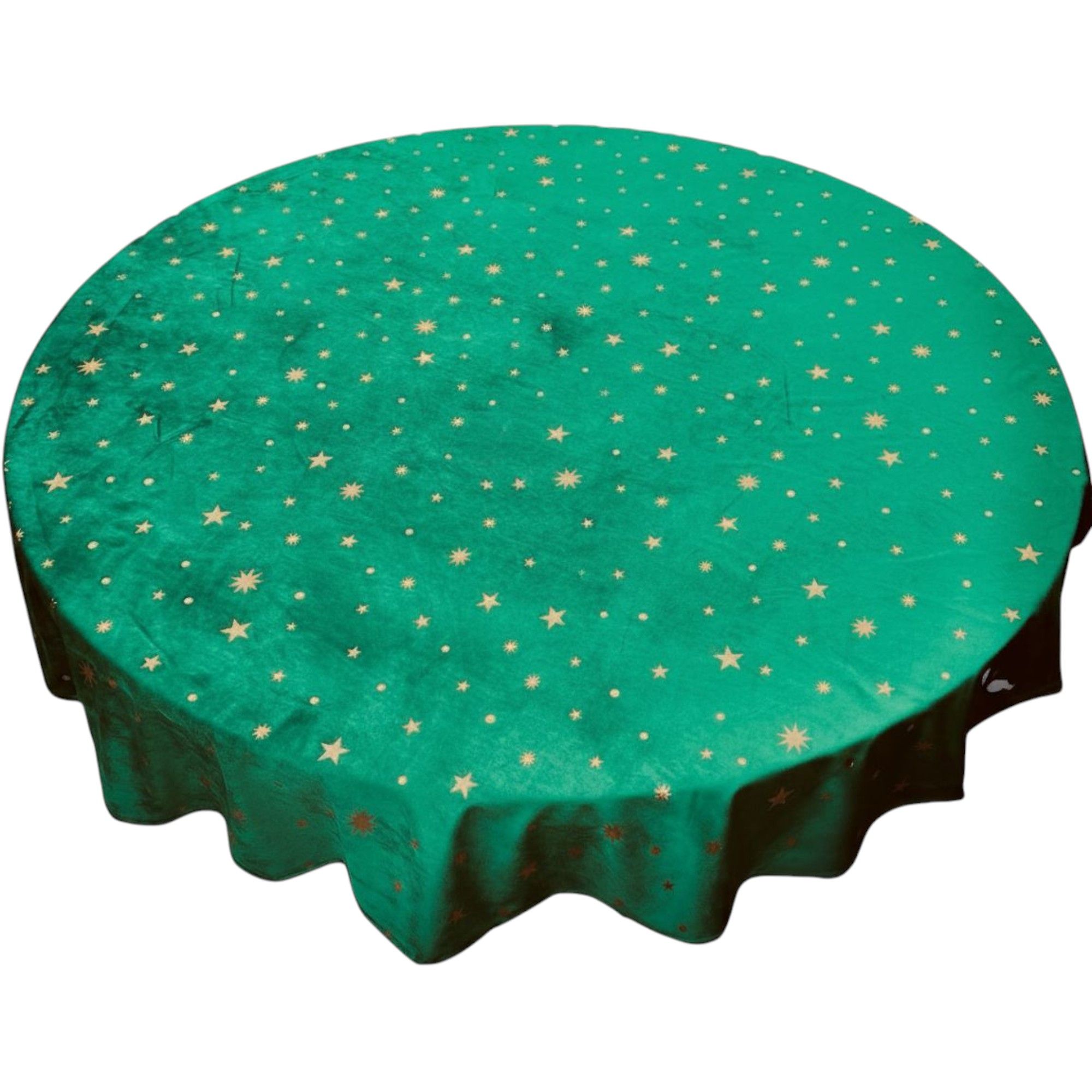 Tafelkleed Rond – Kerst – Kersttafelkleed – Groen – Goudensterren – Ø 160 cm