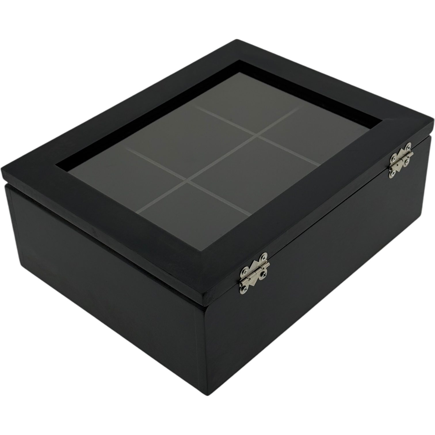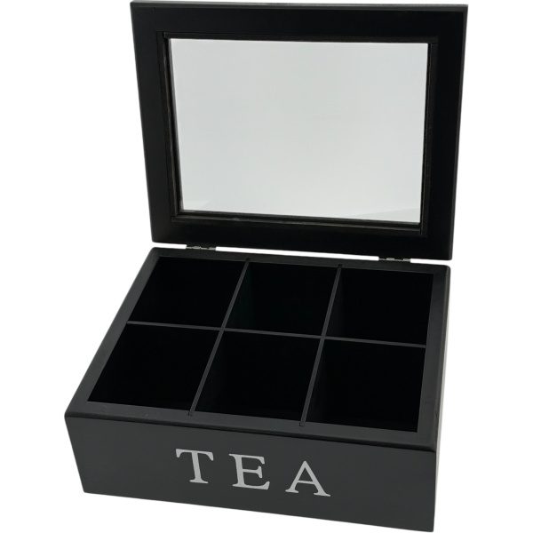 Theedoos – Theekist – Zwart – 6 Vakken – Hout – 23 x 18 x 9 cm