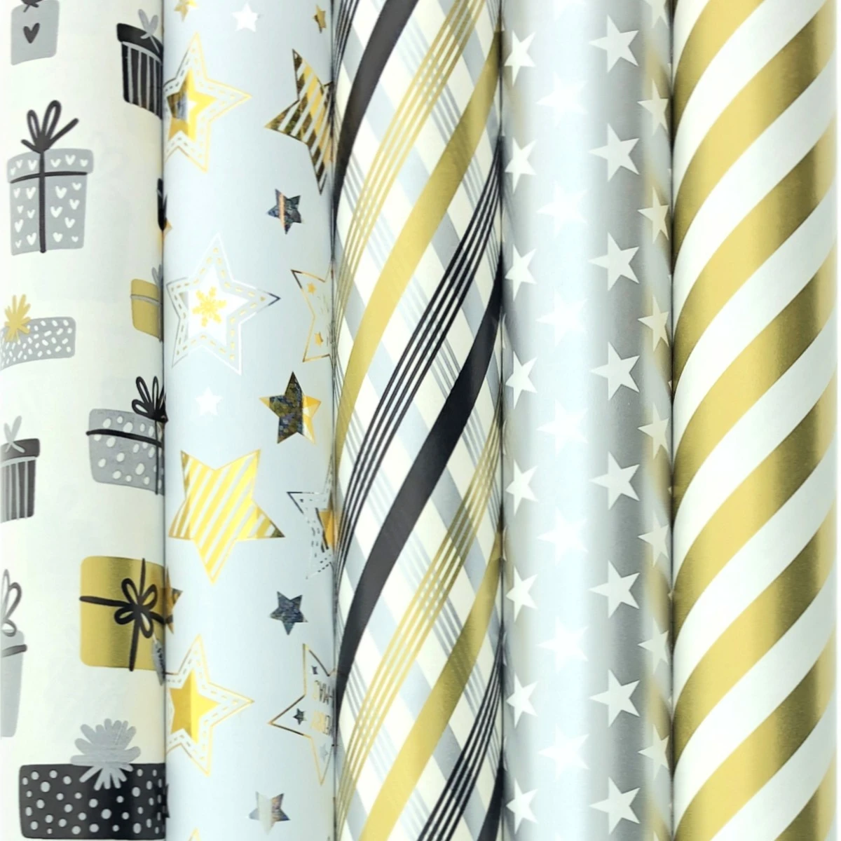 Deze rollen inpakpapier zijn speciaal ontworpen voor de kerstperiode en hebben een lengte van 3 meter en een breedte van 70 cm. En met 5 rollen ben je verzekerd van voldoende papier voor al je kerstcadeaus.