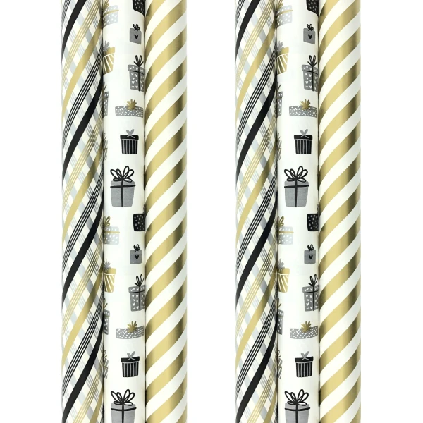 Het TOUCH OF GOLD cadeaupapier assortiment bestaat uit 5 rollen van 2 meter lang en 70 cm breed. Met dit prachtige cadeaupapier geef je jouw geschenken een luxe uitstraling.