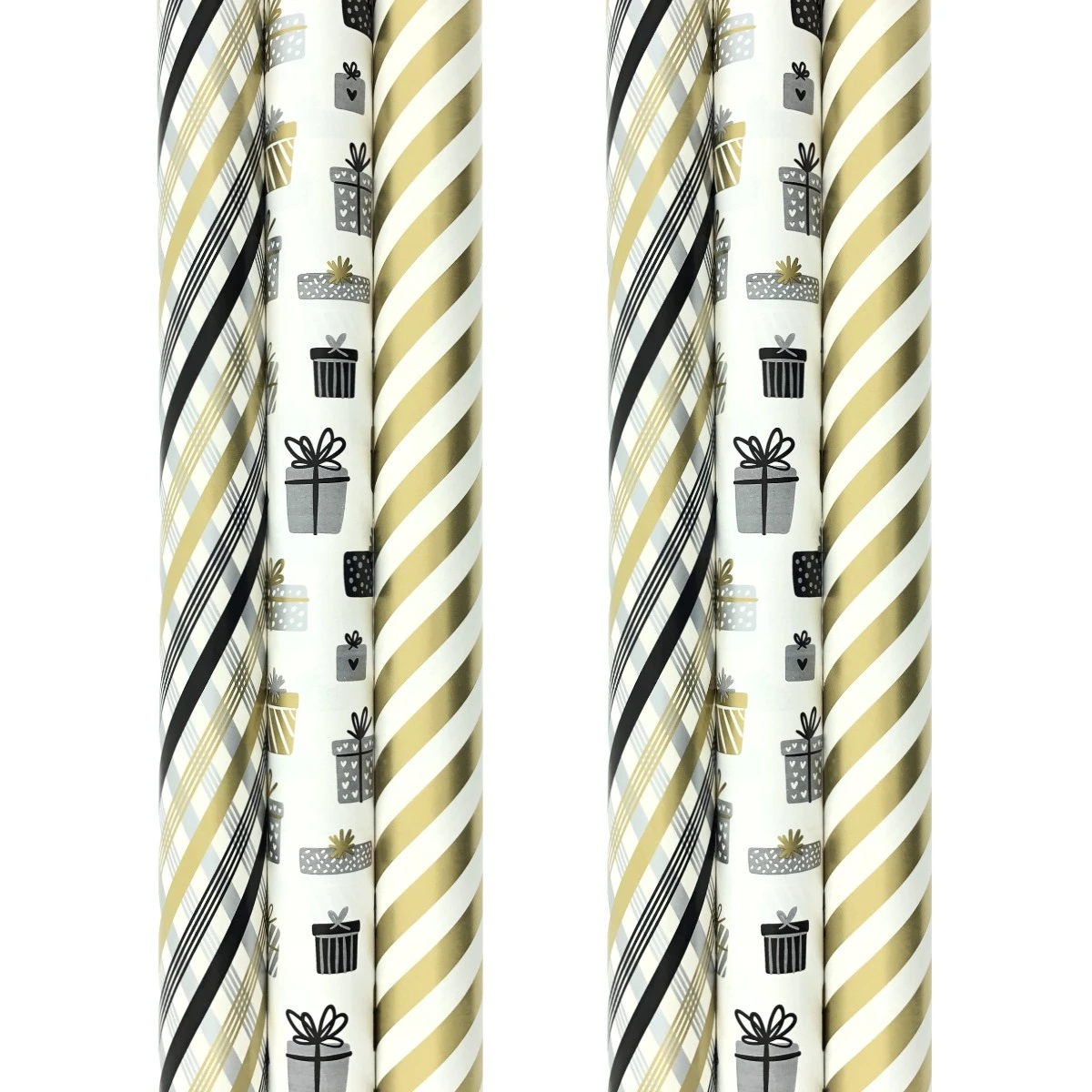 TOUCH OF GOLD cadeaupapier – assortiment kerstpapier inpakpapier – 3 meter x 70 cm – 6 rollen