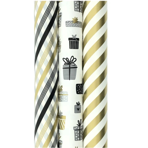 Maak indruk met je cadeaus door ze te omhullen in het TOUCH OF GOLD cadeaupapier assortiment.