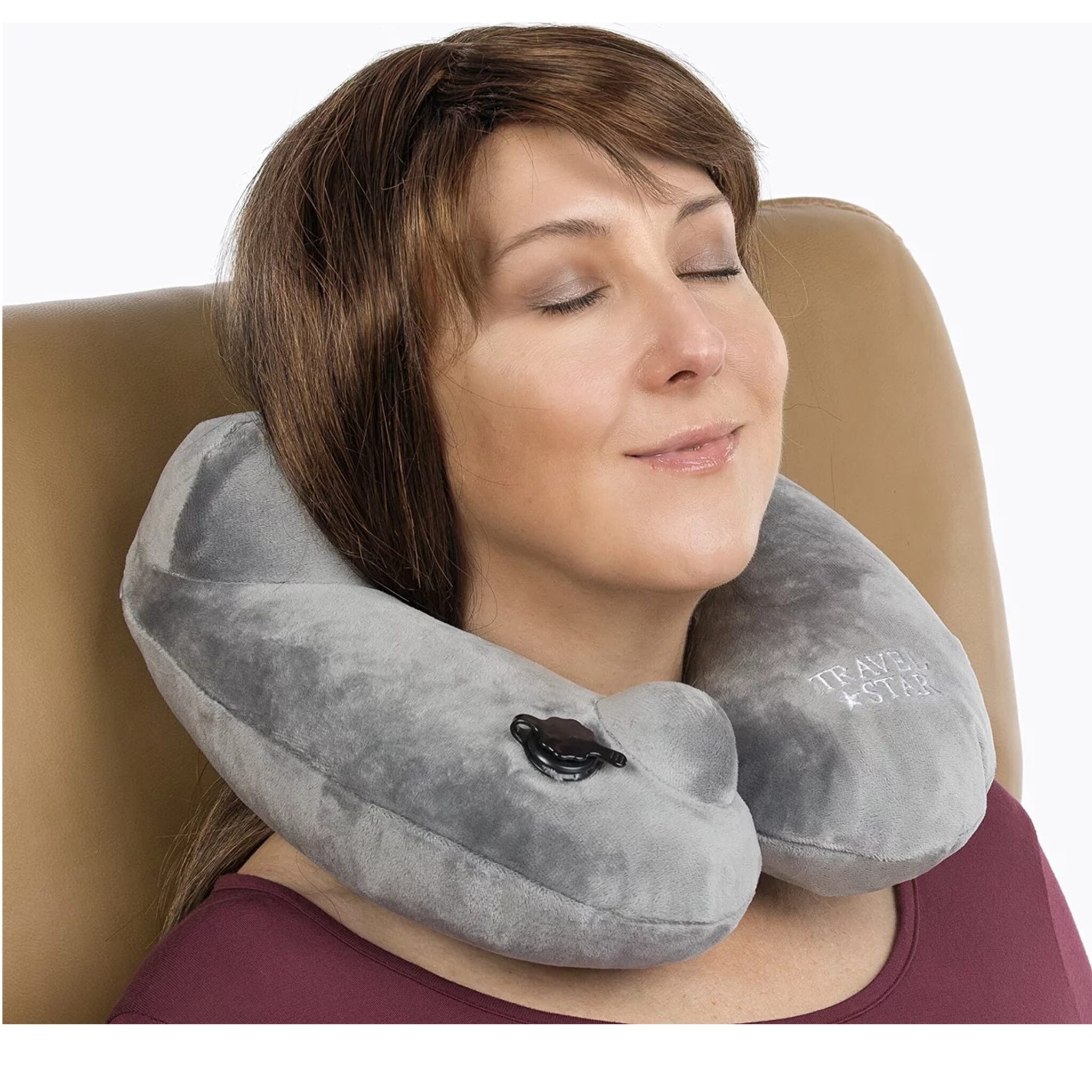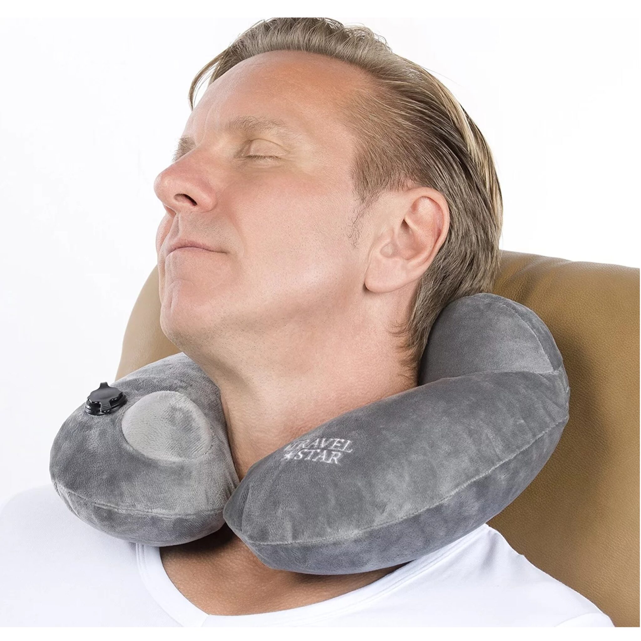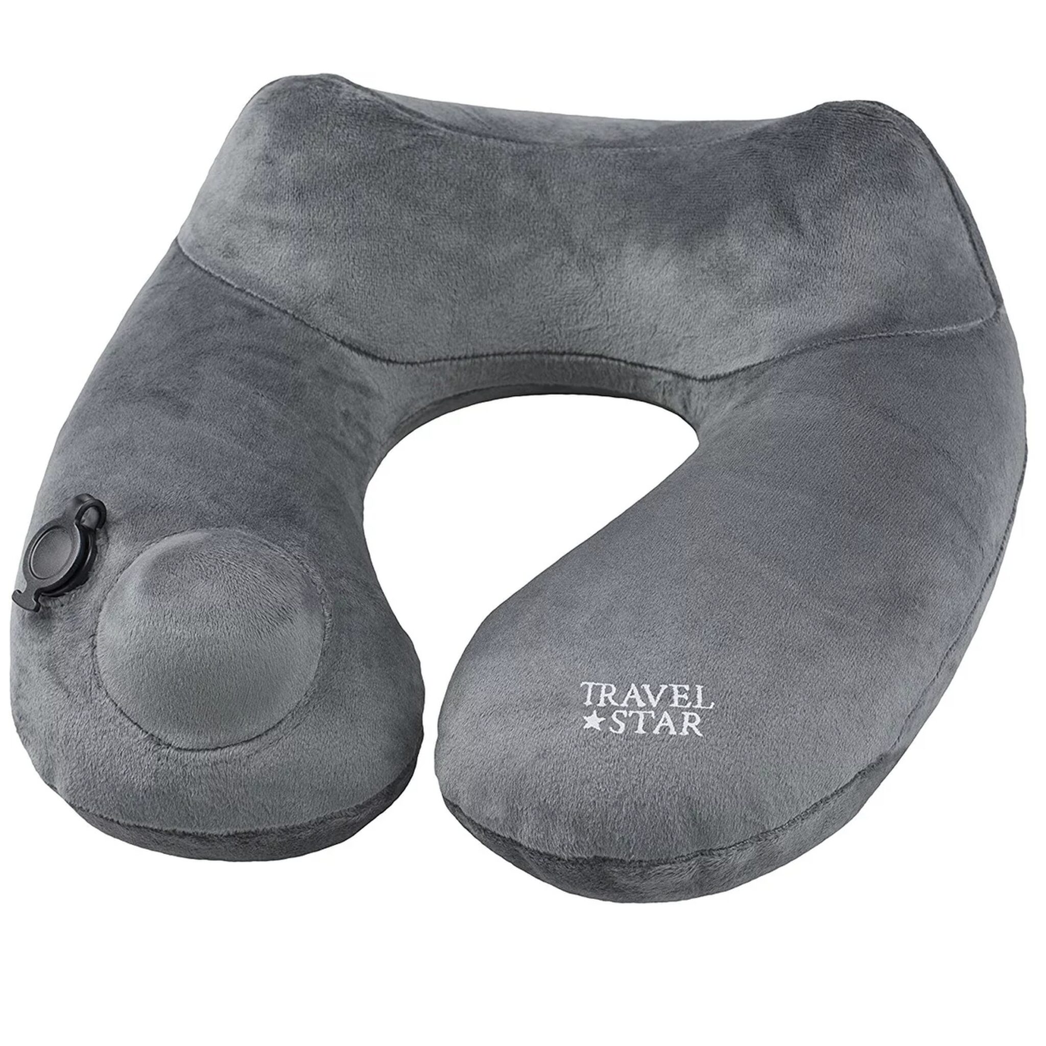 Travelstar Premium Opblaasbaar Reiskussen – Nekkussen – Ingebouwde Pomp – Grijs