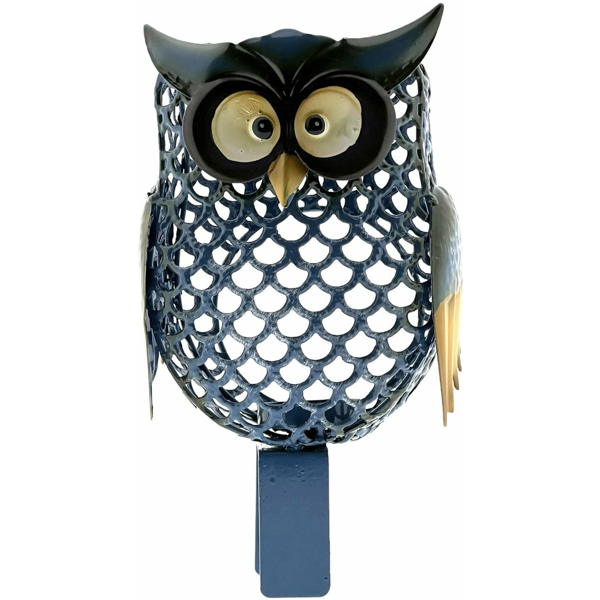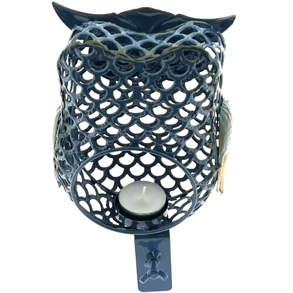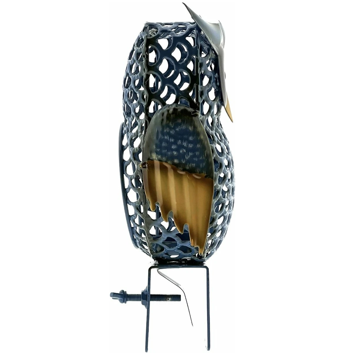 Tuin uil – tuindecoratie – Met Klem – Hek & Schutting – Waxinelichthouder – 26 x 13 cm – Metaal – Blauw