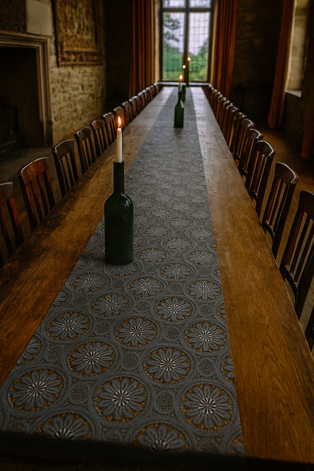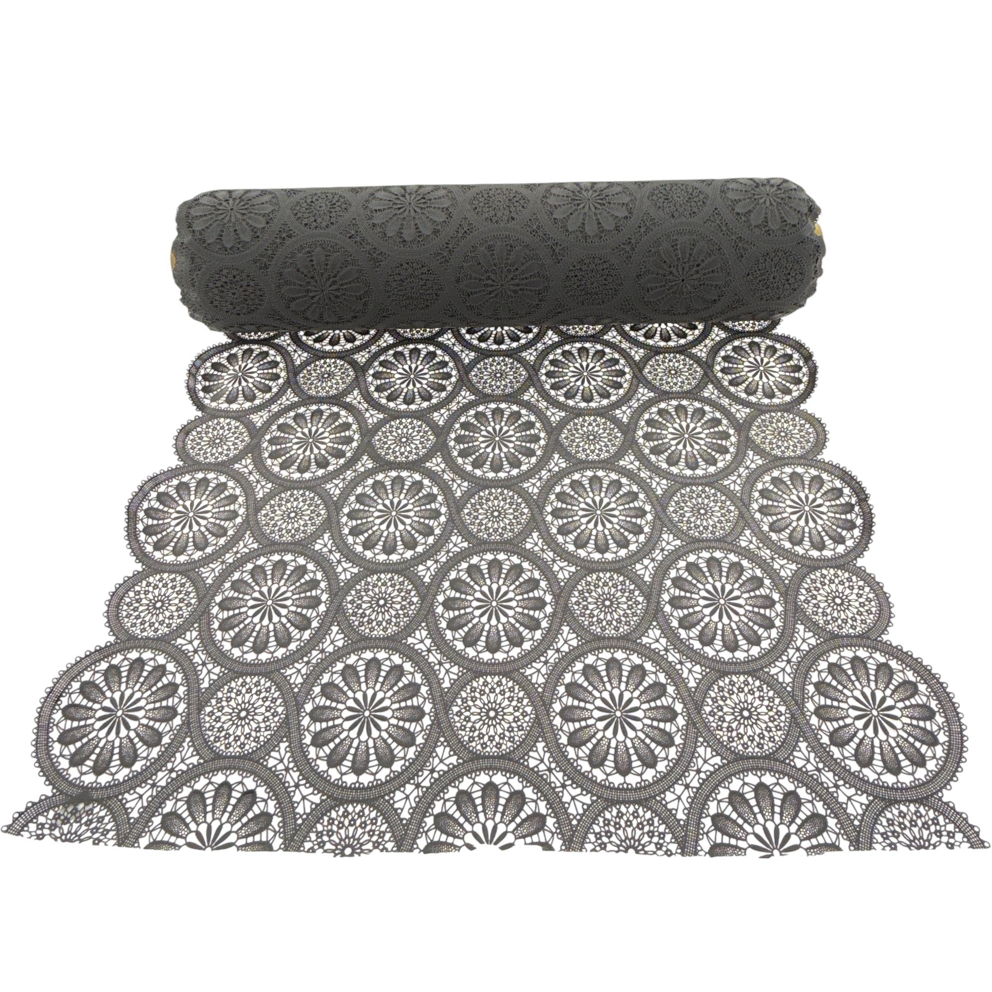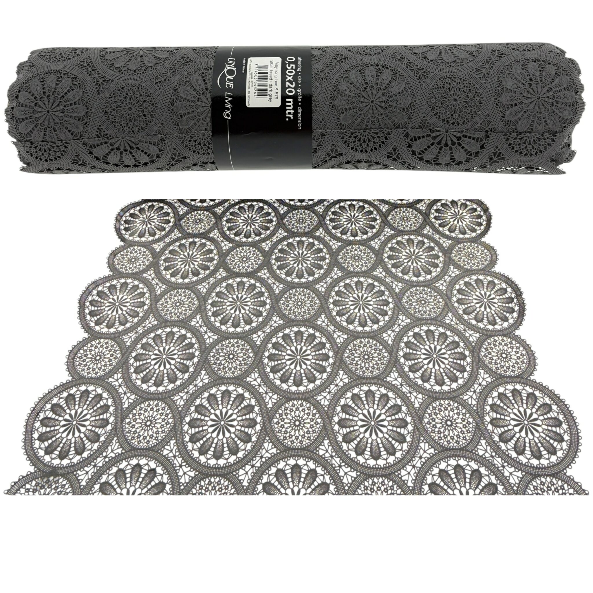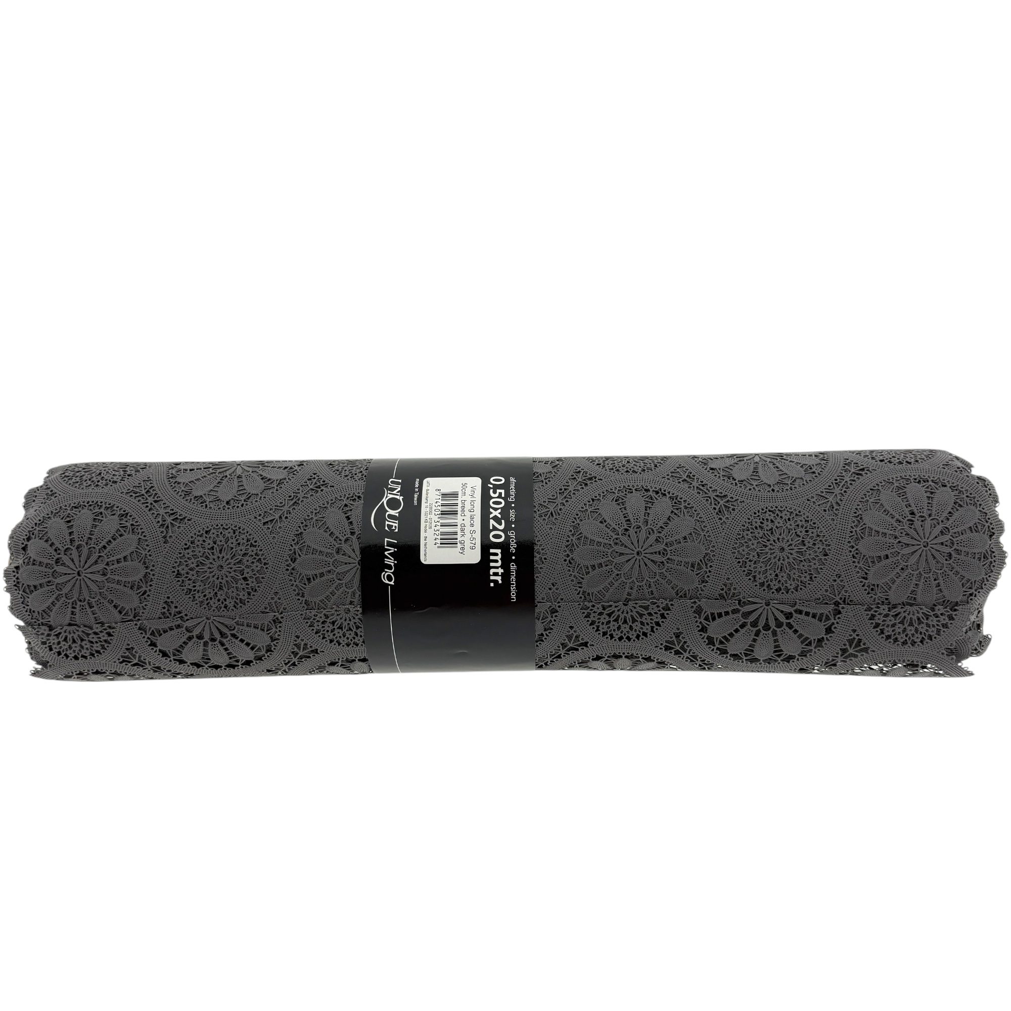 Unique Living – Vinyl – Tafelloper Op Rol – Kantmotief – 50 cm x 20 meter – Afwasbaar – Donker Grijs