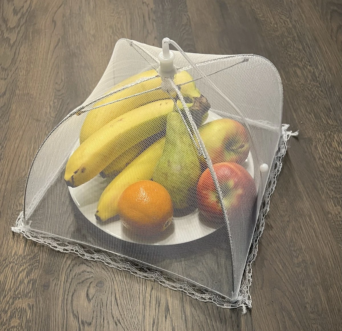 Veilig online shoppen doe je bij ons!Voorkom wespen en vliegen op je eten tijdens een barbecue of etentje in de tuin met deze witte vliegenkap.