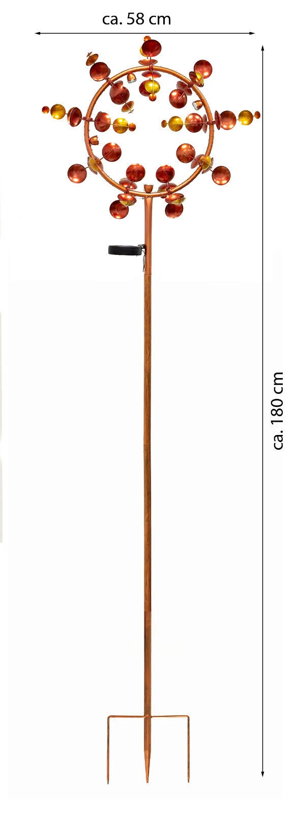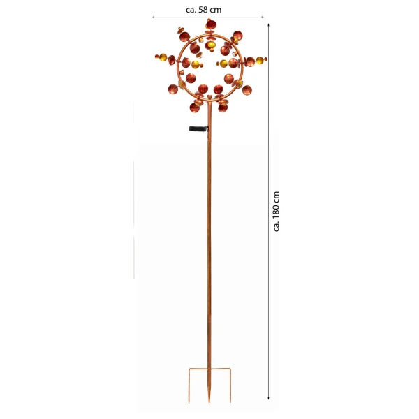 XXL windmolen / windspinner tuinsteker met Solar LED verlichting solar terracotta 180 cm
